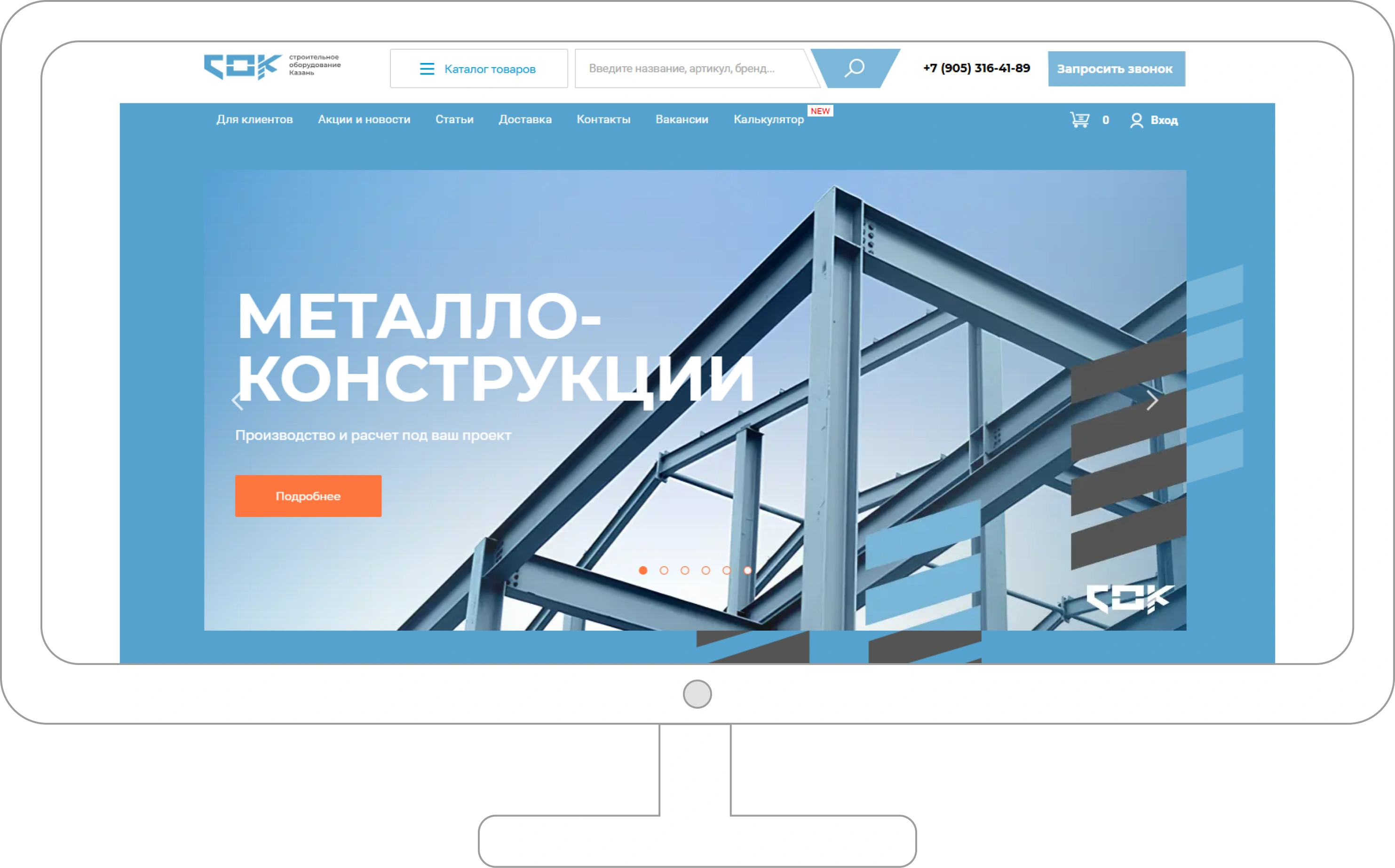 Вместе с клиентом мы создали удобное дерево каталога с товарами, содержащими детальные описания и фильтры. Разделы с актуальными новостями и акциями, оформленные в фирменном стиле, делают сайт информативным и привлекательным.