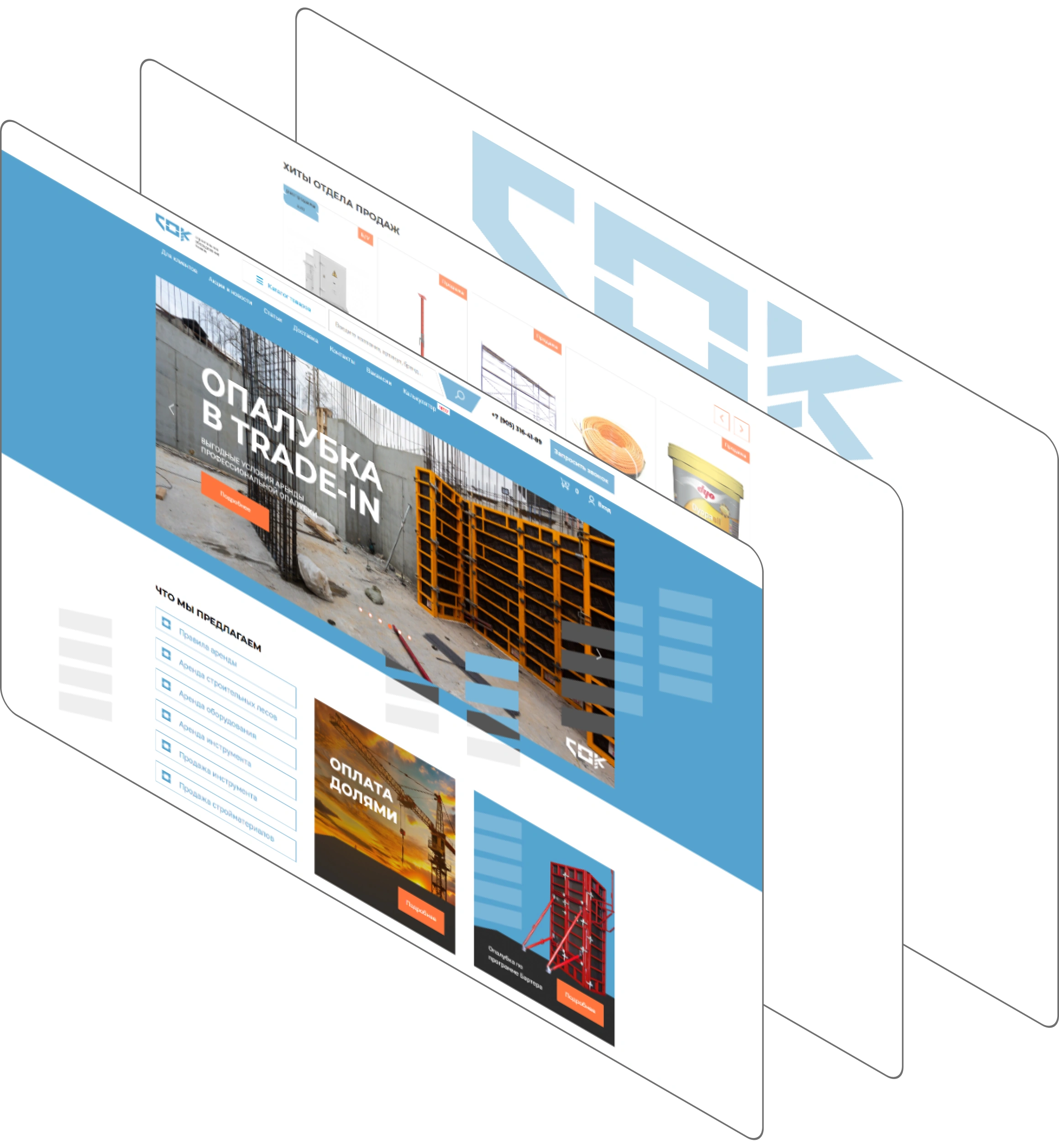Фирменный стиль «СОК» сочетает технологичность и энергию. Цветовая палитра — динамичный оранжевый и технический голубой. Разработан узнаваемый паттерн, вдохновлённый модульной структурой строительной опалубки.